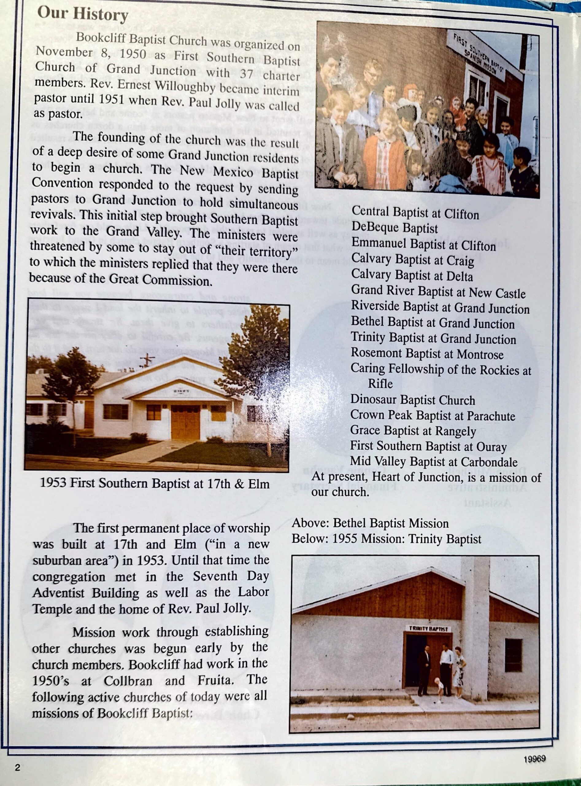 Mission work has always been important to Bookcliff Baptist. The church has been involved in starting or sponsoring at least 18 congregations in Colorado. Most of these missions have been constituted into churches.