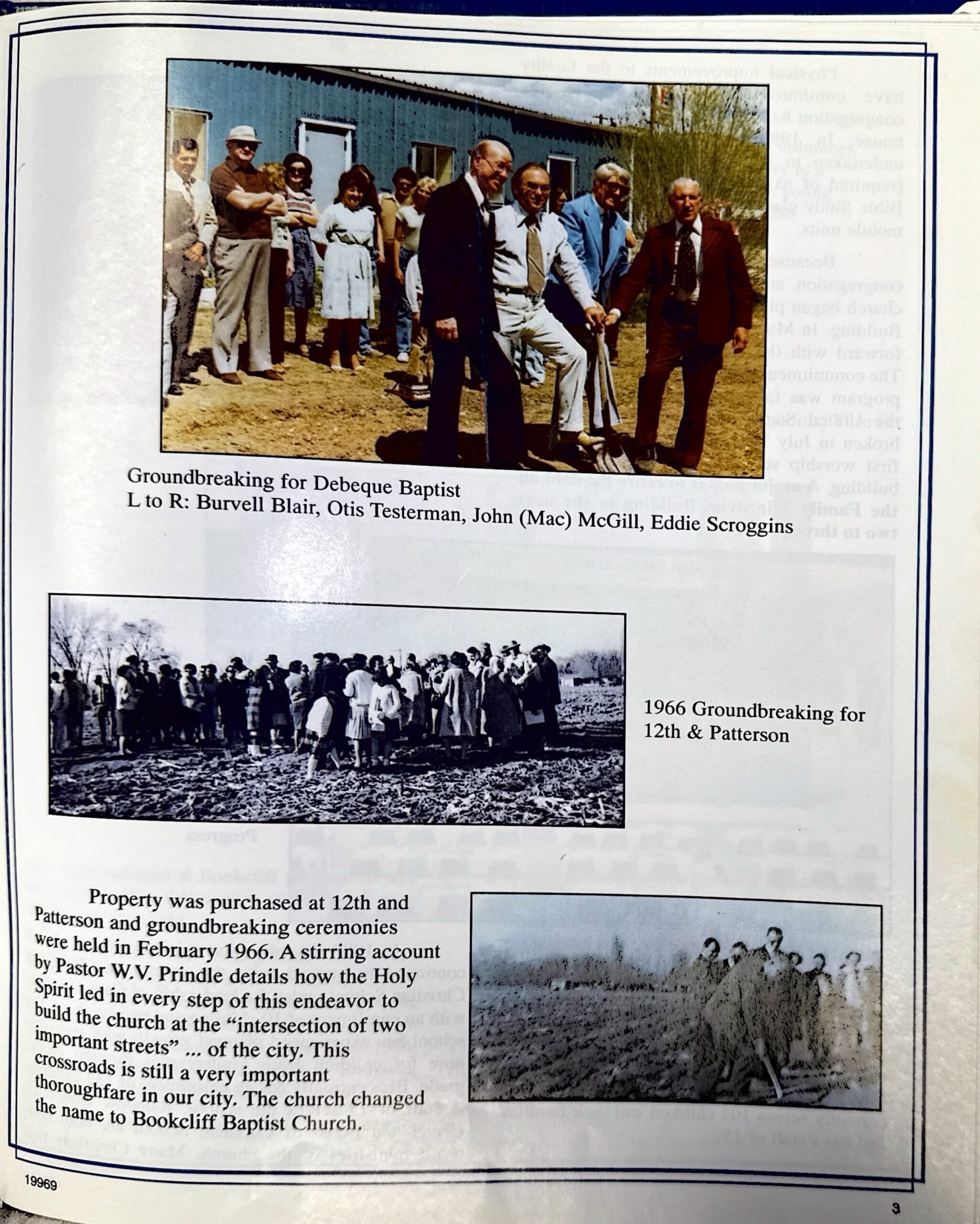 Over the years Bookcliff has been blessed with many wonderful pastors. In order of their service the senior pastors have been: Ernest Willoughby, Paul Jolly, Autry Brown, W.V. Prindle, George E. Ray, Jr., Otis Testerman, John Robbins, Kenny Long, and Chad Moore. Our current senior pastor, Tobey Williams, was called in 2020.